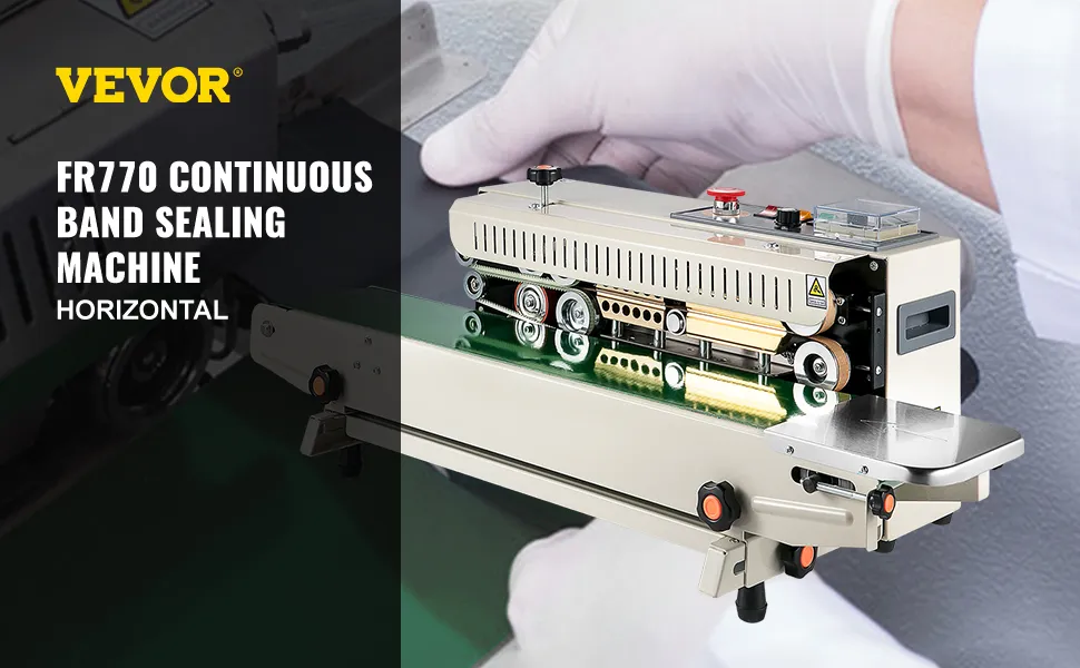 Our Continuous Horizontal Band Sealer FR-770 is for packing and sealing dry goods and suitable for sealing and bag-making various plastic and compound films. The machine uses an electronic constant temperature mechanism and a step-less speed adjusting transmission mechanism, making it ideal for the assembly line. You can print the production date, logo, etc., in the film simultaneously. Due to the bag's different thicknesses, it is recommended to adjust the temperature and pressure value.