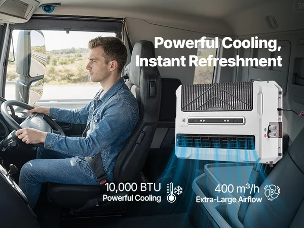 Fast Cooling: This truck air conditioner delivers 10,000 BTU of cooling power with a strong 400 m³/h airflow. It quickly reduces a sun-heated cab from 50°C to a comfortable temperature range