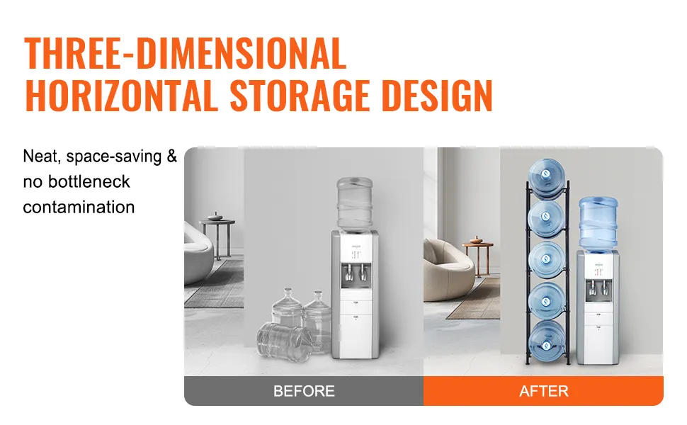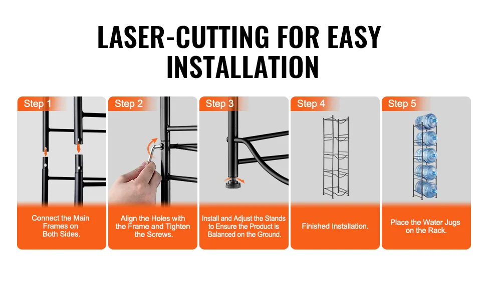 Easy Installation: Our water jug rack features laser-cut holes for precise and easy assembly. The rack can be assembled with the desired number of tiers and comes with a manual for quick setup.