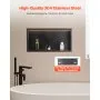 VEVOR shower niche, made of 304 stainless steel, is 100% sealed and waterproof with a corrosion-resistant, easy-to-clean, scratch-resistant coating. It features a pre-installed hollow shelf to prevent water accumulation, perfect for bathrooms, cabinets, and kitchens.