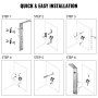The VEVOR LED shower panel offers high water pressure. This ensures a revitalizing shower experience every time. Its strong water flow is perfect for washing away stress. High pressure makes your shower more effective and enjoyable. It's ideal for those who enjoy using an energizing spray. The system doesn't have flow restrictors. So, the water pressure depends on what supplies your home has. You don't need to use restrictive devices, as this system functions effectively without any flow restrictions. That means that the amount of water pressure depends upon how much power comes from your house supply. Since there are no flow restrictions, the water flow depends on your home supply. If you like rinsing off quickly enough, it also makes the shower feel more luxurious. Additionally, its strong flow makes it ideal for outdoor showers. Enjoy a regenerating shower that leaves you feeling refreshed. High water pressure is one of the most important parts of this shower system.