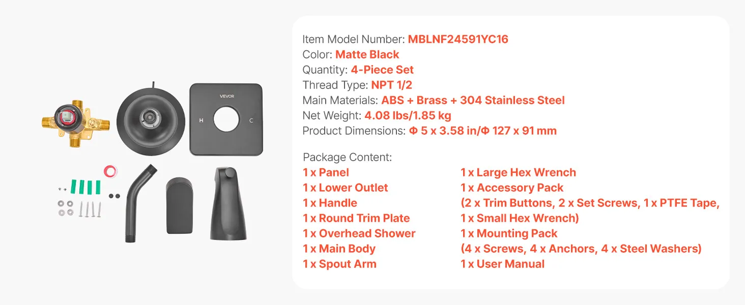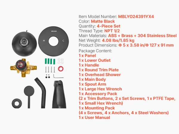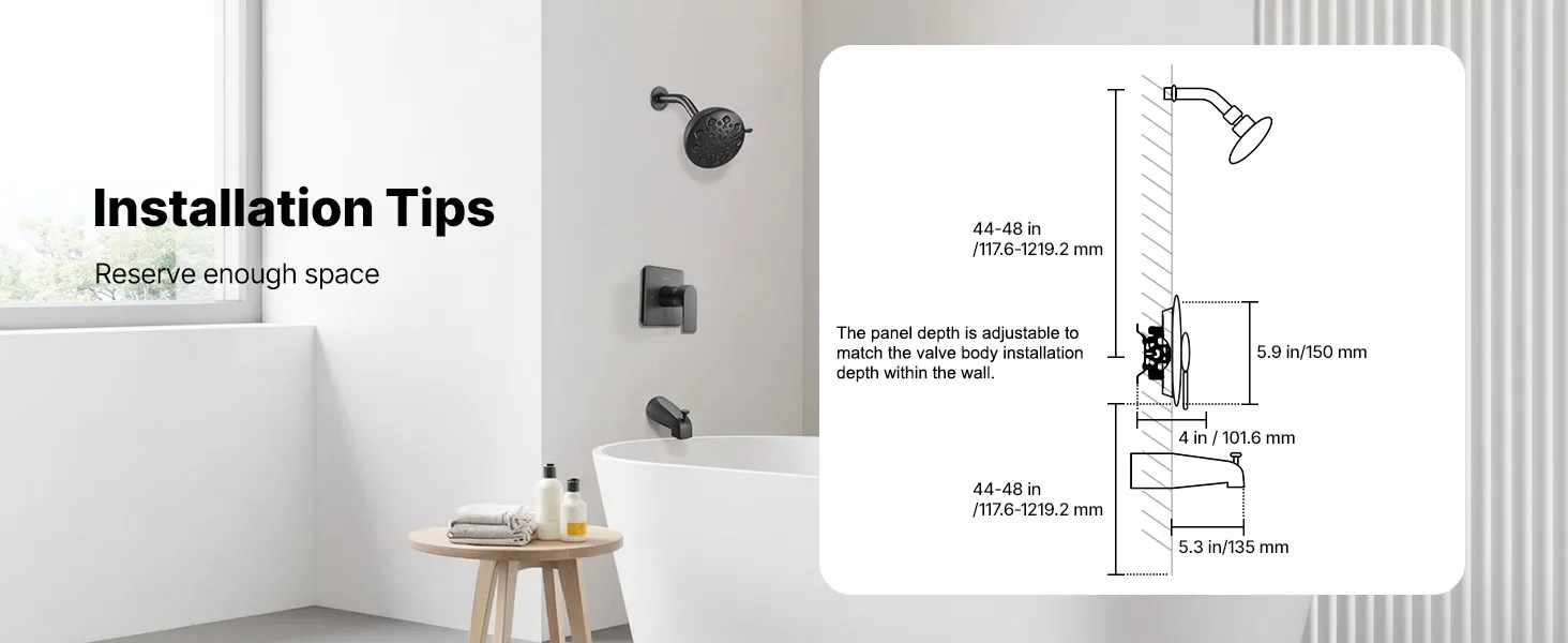 Durable Material: This tub shower faucet set includes: ABS shower head, brass valve body, 304 stainless steel panel. It is heat-resistant, rust-proof, and does not affect water quality. Matte black finish suits homes, hotels, and public bathrooms