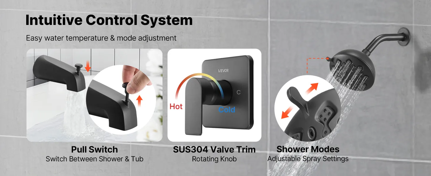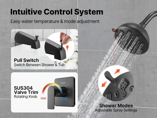 Easy to Use: This shower and tub faucet set features an integrated control system combining water temperature adjustment and switch control. Its pull-out switch switches between the shower head and faucet. Easy operation for you