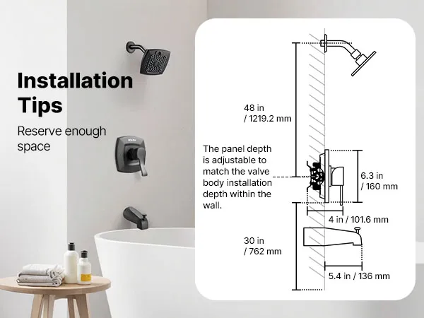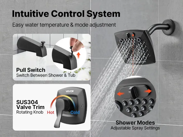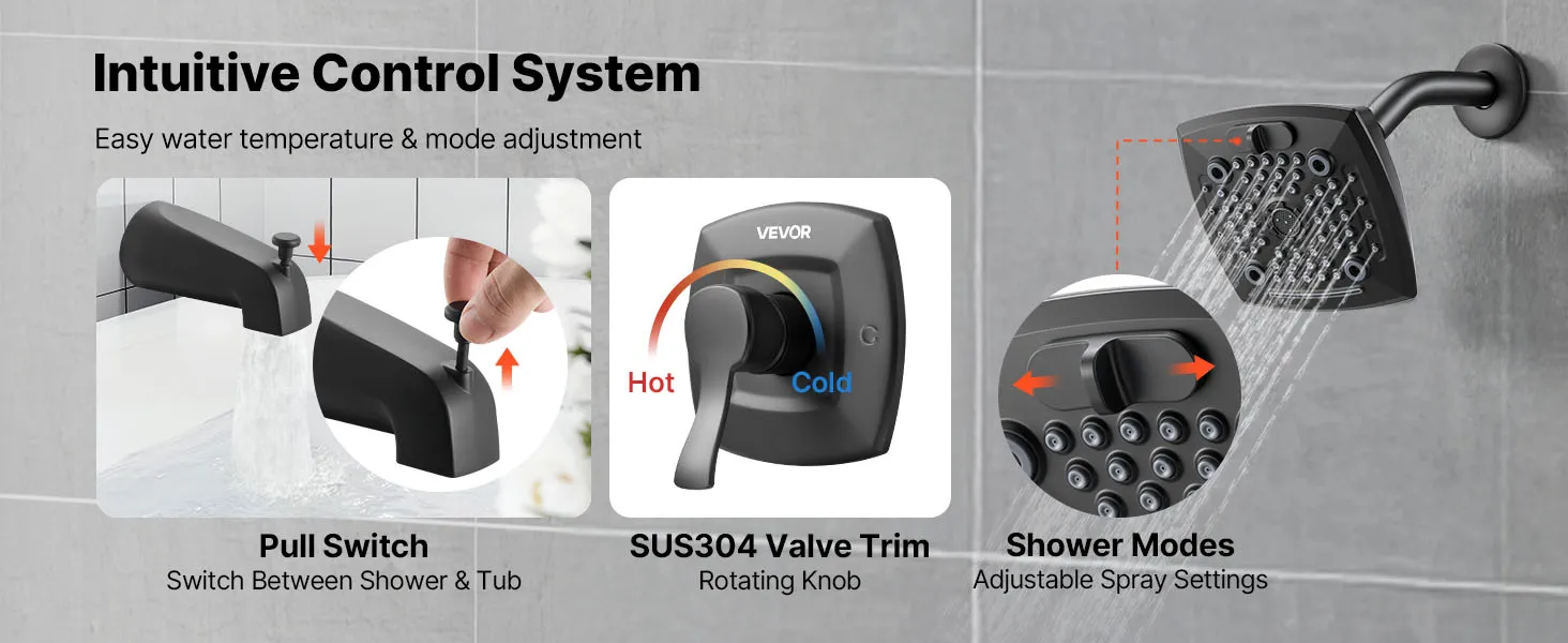 Easy to Use: This shower and tub faucet set features an integrated control system combining water temperature adjustment and switch control. Its pull-out switch switches between the shower head and faucet. Easy operation for you