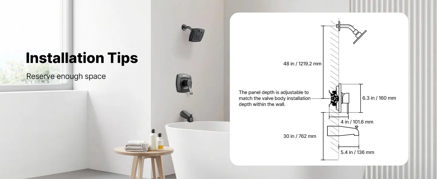 Before installation, confirm that your plumbing system is compatible with our tub shower faucet set. If not, the old shower valve must be detached.