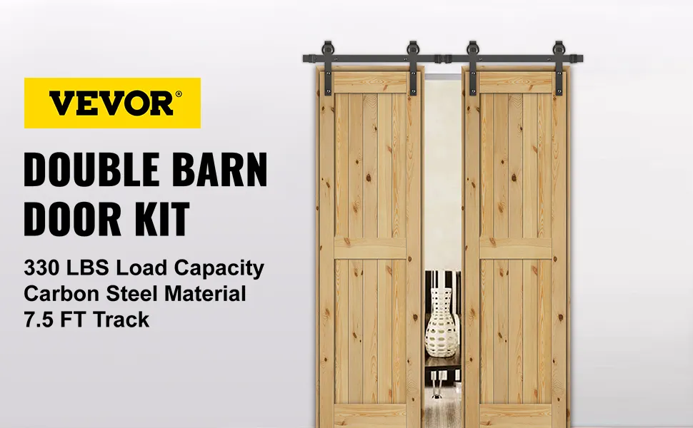 A sliding barn door hardware kit is a great way to add a little privacy to an open space or divide a separated space. It is made of high-quality, heavy-duty carbon steel, secure & reliable with powder-coated and 330lbs load-bearing capacity. Anti-jump, floor guide, and door stoppers are beneficial to keep stability.