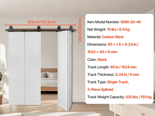 VEVOR Bi-Folding Sliding Barn Door Hardware Track Kit, 60" Top Mount Track Kit, Slide Smoothly & Quietly, Heavy Duty, Easy to Install, Suitable for Four 14" Closet Pantry Laundry Doors (Not Included)