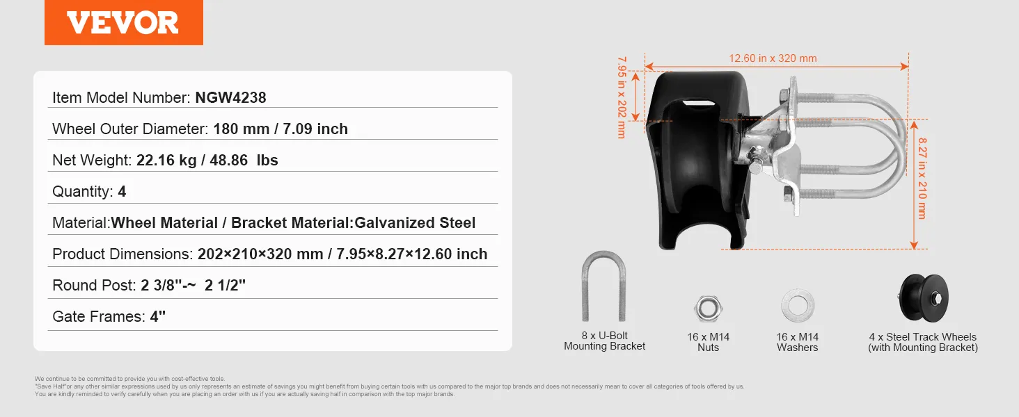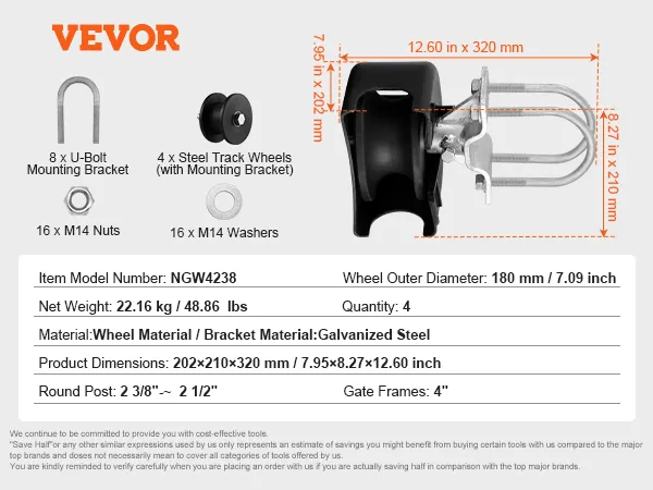 VEVOR Sliding Gate Kit, Rolling Gate Hardware Kit w/ U-Shaped Wheel Groove for Cantilever Sliding Gates and Rolling Door, Sliding Gate Rollers 4 Track Wheels w/ Cover, Heavy Duty Sliding Roller,Black VEVOR Sliding Gate Kit, Rolling Gate Hardware Kit w/ U-Shaped Wheel Groove for Cantilever Sliding Gates and Rolling Door, Sliding Gate Rollers 4 Track Wheels w/ Cover, Heavy Duty Sliding Roller,Black