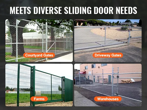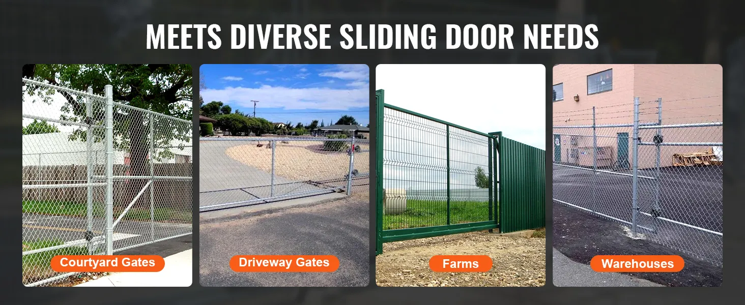 • Multi-Frame Compatibility: This sliding gate hardware system is designed to fit a wide range of sliding doors, including those for courtyards, driveways, farms, and warehouses. It works with various door frame sizes, requiring no customizations. Installation is quick and easy, offering greater flexibility and convenience.