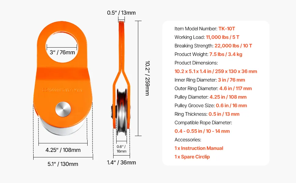 This snatch block handles up to 11,000 lbs (5T) working load and 22,000 lbs (10T) break strength. Ideal for heavy-duty tasks like vehicle recovery and tree hauling, it gets the job done with ease and efficiency.