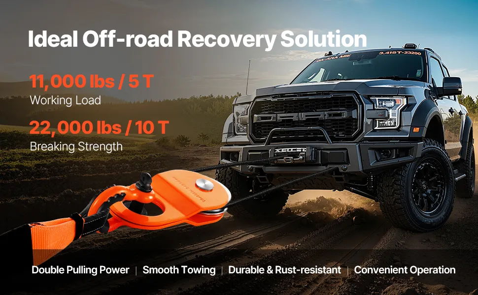 Heavy Duty Load: This snatch block is ideal for heavy vehicle recovery with a rated working load of 11,000 lbs / 5 T and a breaking strength of 22,000 lbs / 10 T. Whether you're a beginner off-roader or an outdoor adventurer, this block easily helps you recover trucks, tractors, ATVs, and UTVs in any situation.