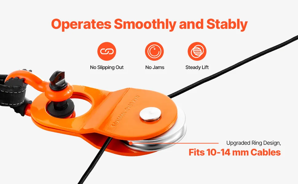 The pulley block features a grooved pulley to keep the rope in place. This design helps avoid uneven load distribution and slippage, ensuring your recovery process stays smooth and reliable with every use.