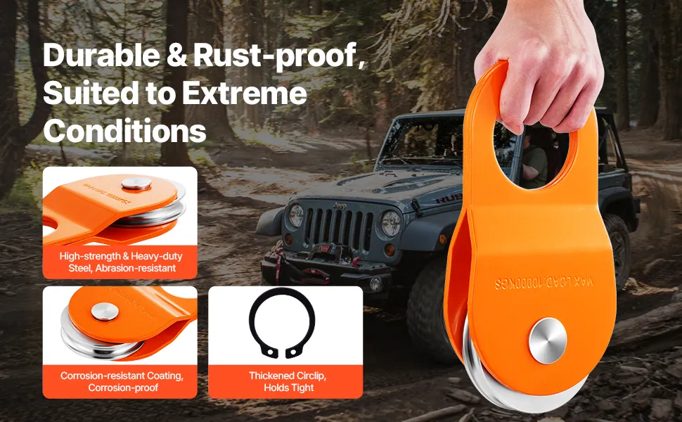 Rust-Resistant Durability: Made from high-quality, heavy-duty steel, this winch snatch block features a corrosion-resistant coating to withstand harsh conditions. Built to last, it ensures exceptional performance even in extreme weather or rough environments, keeping your gear reliable for any adventure.