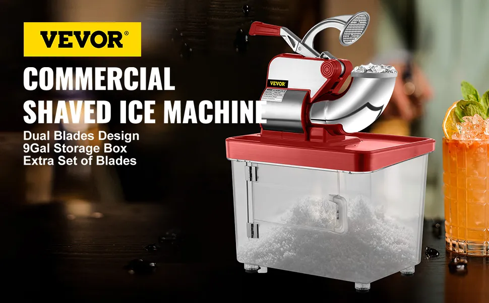 This snowcone machine adopts dual blades, providing double shaving speed, more efficient than the single blade. The amount of crushed ice per hour can reach 396.8 lbs (180 kg).