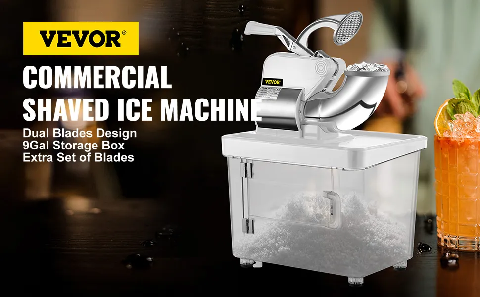 This snowcone machine adopts dual blades, providing double shaving speed, more efficient than the single blade. The amount of crushed ice per hour can reach 396.8 lbs (180 kg).