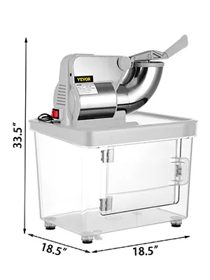 Pressing the handle can advance the speed of crushing ice. A limit switch is included (the snowball machine will only start running when the handle reaches a certain position). The lattice prevents splashing.