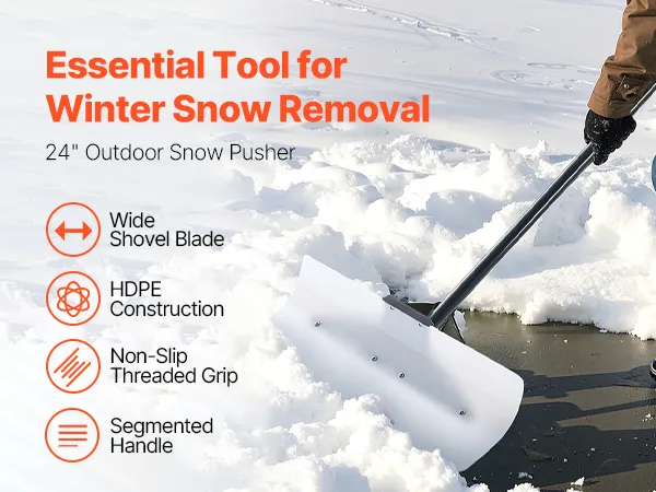 VEVOR Snow Pusher Shovel, 61 cm Wide Outdoor Snowplow Shovel with Ergonomic Grip, HDPE Plastic Blade, Winter Shovels with Segmented Handle, Portable Snow Removal Tool for Driveway Garden Camping VEVOR Snow Pusher Shovel, 61 cm Wide Outdoor Snowplow Shovel with Ergonomic Grip, HDPE Plastic Blade, Winter Shovels with Segmented Handle, Portable Snow Removal Tool for Driveway Garden Camping
