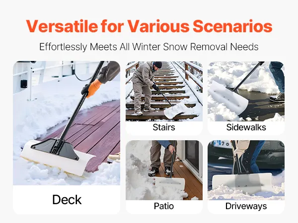 • Versatile Use: The snow pusher shovel is suitable for clearing snow from yards, stairs, decks, and driveways. Its powerful clearing ability ensures secure and convenient travel during the winter months