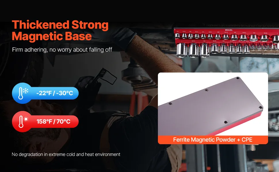 Strong Magnetic Base: Featuring a robust 5mm thick magnetic base composed of ferrite and CPE, our socket organizers for toolbox provides strong, stable attachment to metal surfaces, keeping sockets trays firmly in place without slipping.