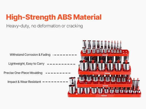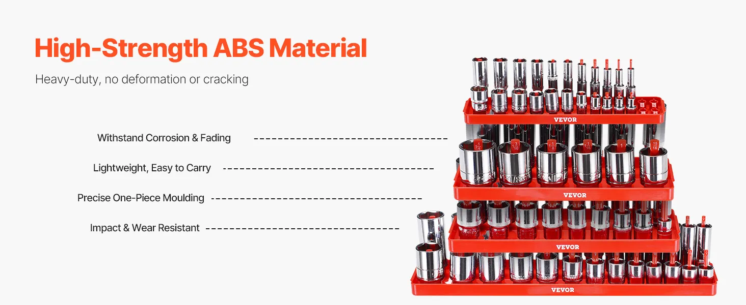 Made from ABS material, the socket organizer set offers excellent shock resistance, maintaining structural integrity even during accidental drops or impacts, ensuring long-lasting use.