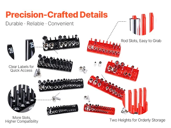 This socket holder is meticulously designed for comfort, convenience, and quality, every aspect—whether accessing or storing tools—reflects careful craftsmanship.