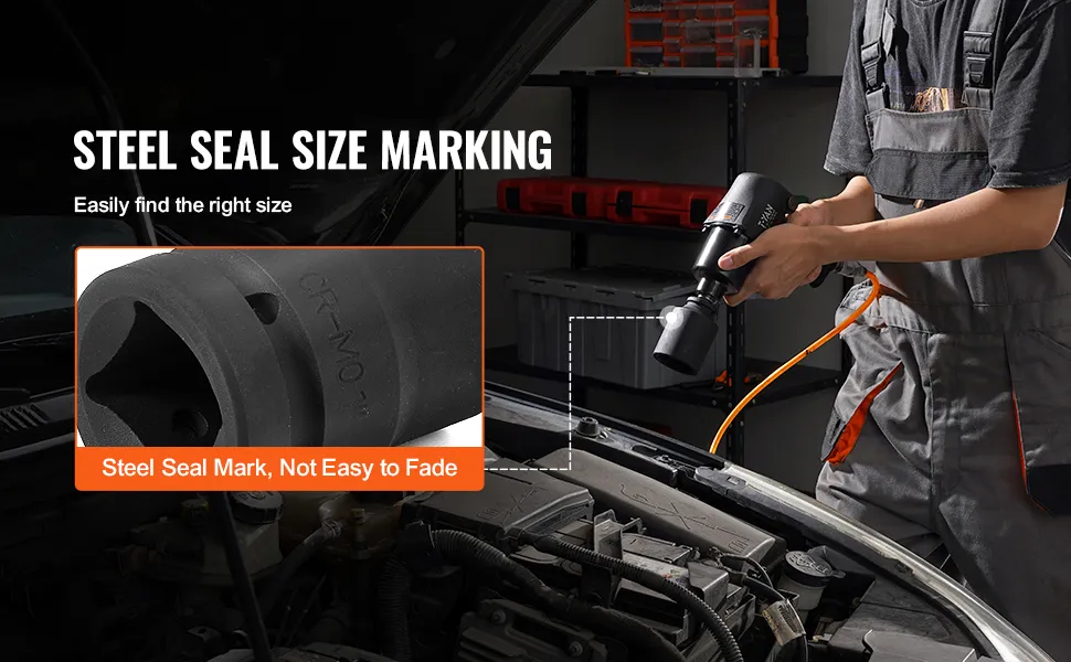 Impact-Resistant & Corrosion-Resistant: Constructed from heat-treated CR-MO steel, the spindle nut socket set can withstand high torque from impact tools. The phosphate finish adds corrosion resistance, and each socket is clearly marked for easy identification.