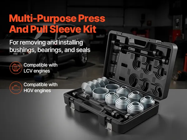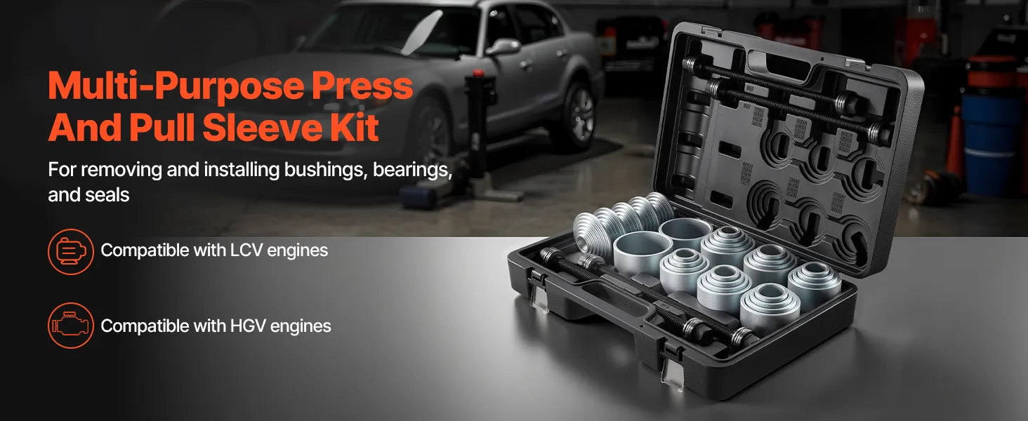Wide Compatibility: The press and pull sleeve kit is compatible with engines in cars, LCVs, and HGVs. It's ideal for removing and installing bushings, bearings, and seals while reducing the risk of damage to suspension housings
