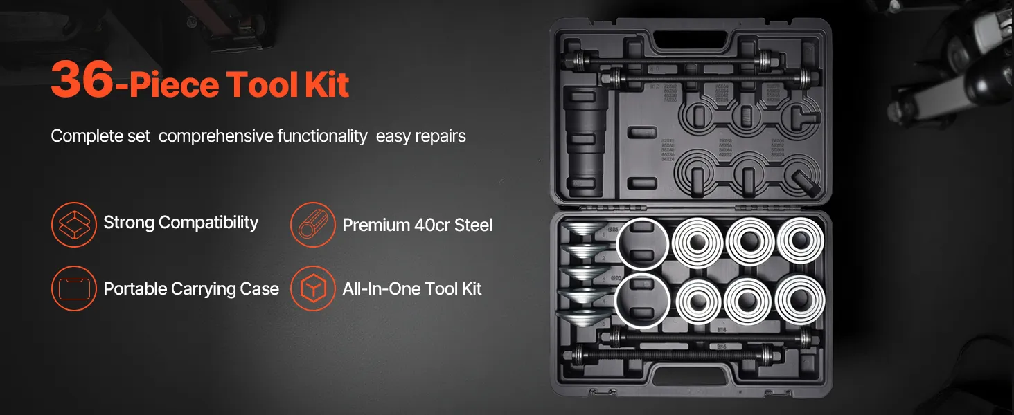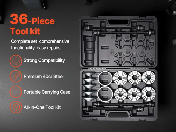 This 36-piece bushing removal kit integrates seamlessly with your tools and systems. Made from durable 40CR steel, it ensures stability and reduces risk of part damage—streamlining your workflow and saving time.