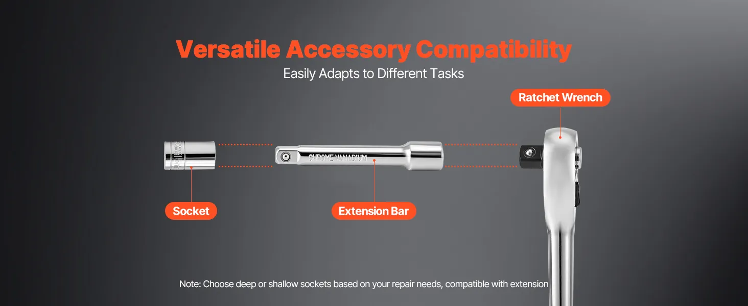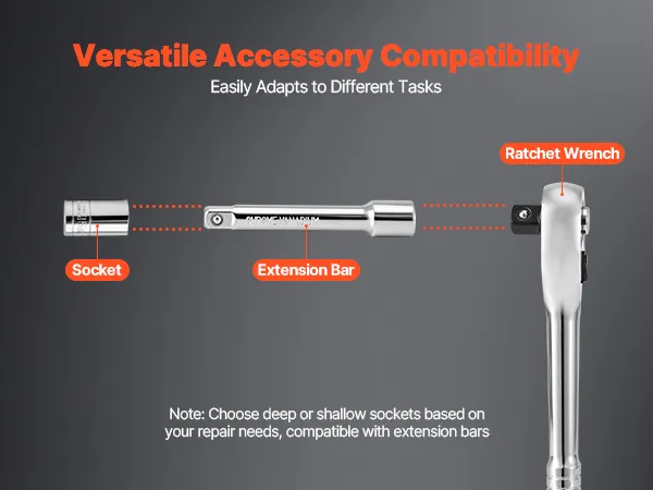 The precision socket and ratchet set works seamlessly with a variety of sockets and extension bars. Quick-release connections allow smooth switching between tools, significantly improving efficiency and convenience across different tasks.
