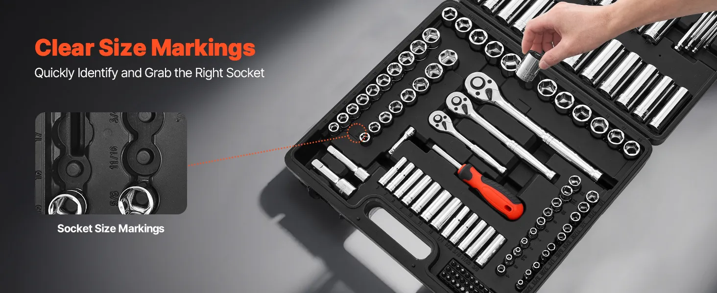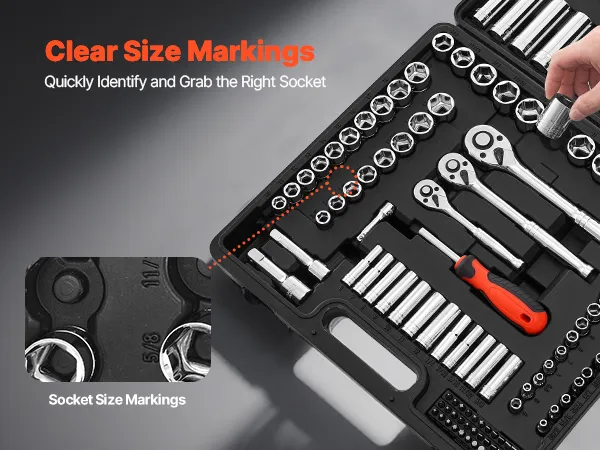 Each socket features engraved, easy-to-read size markings that are highly wear-resistant. This socket tool set ensures quick identification and faster access to the right tool when you need it.