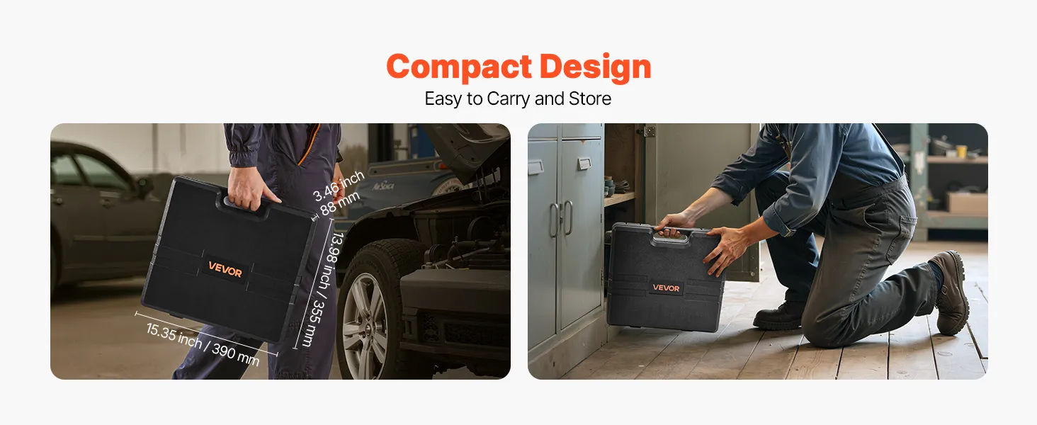 Designed for portability, the case of the metric socket set measures 15.35 x 13.98 x 3.46 inch / 390 x 355 x 88 mm. Its compact size fits easily into tight spaces or can be carried on the go, ensuring efficient work anywhere.