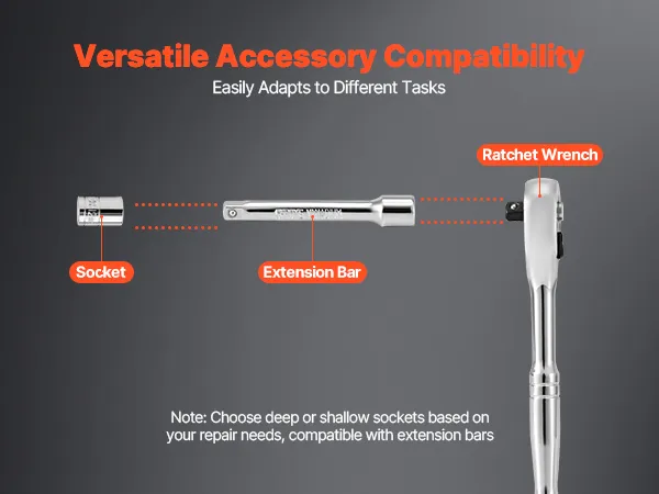 The precision socket and ratchet set works seamlessly with a variety of sockets and extension bars. Quick-release connections allow smooth switching between tools, significantly improving efficiency and convenience across different tasks.