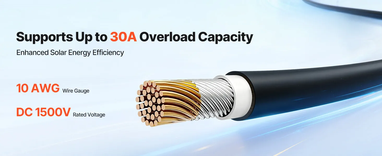 Designed to handle high current demands under strong sunlight, this solar panel extension wire supports powerful solar setups and higher system loads, ensuring compatibility with high-output equipment without risking cable damage or system instability.
