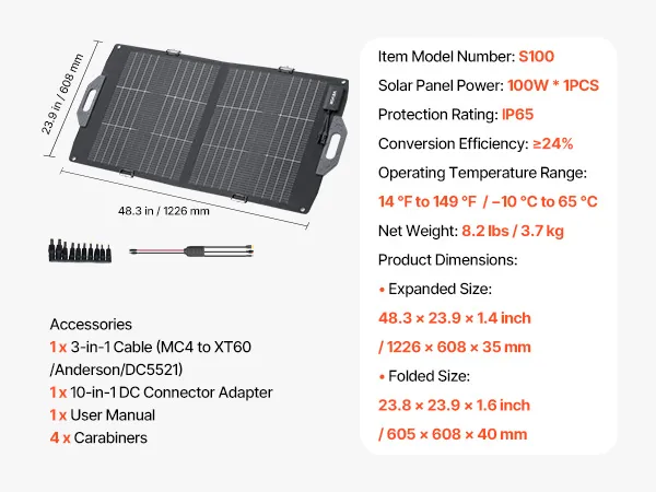 Power your outdoor adventures with our 100W bifacial foldable solar panel. Built with high-efficiency monocrystalline cells and ≥24% conversion efficiency, it delivers a reliable power supply for fast devices charging — an essential companion for camping, RV trips, hiking, and fishing.