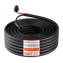 VEVOR 15.24M Solar Panel Extension Cable, 10 AWG, Solar Panel Wire with Flame Retardant Protective Sleeving, Female and Male Connectors, IP67 Waterproof PV Wire, for Outdoor Automotive RV, Black & Red