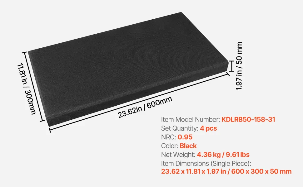 VEVOR 4 PCS Acoustic Panels, 5cm Thick 60 x 30 cm Fiberglass Sound Absorbing Panels, Self-adhesive Soundproof Wall Boards, for Studios, Office, Home Theater,Meeting Room, Black VEVOR 4 PCS Acoustic Panels, 5cm Thick 60 x 30 cm Fiberglass Sound Absorbing Panels, Self-adhesive Soundproof Wall Boards, for Studios, Office, Home Theater,Meeting Room, Black
