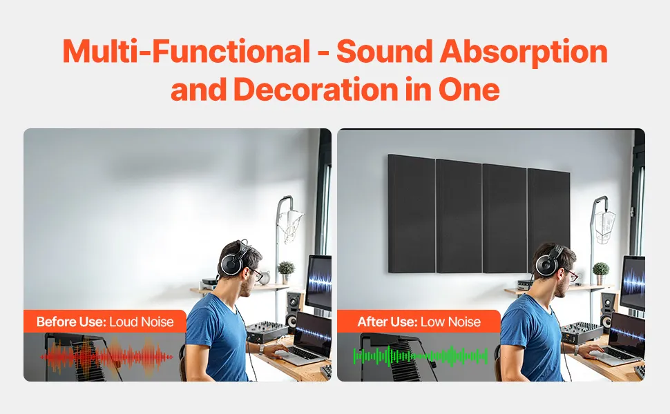 Block out noise with our high-quality wall panels! Easy to apply with a self-adhesive design, no drilling needed. Odor-free, strong sound insulation, and available in multiple colors to match any decor. Perfect for living rooms, offices, studios, and more!