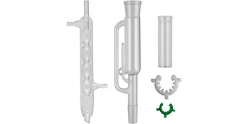 Our soxhlet extractor kit is made of borosilicate glass. The unique design solves the clogging during extraction. A series of bulbs of the inner tube increases the surface area, which improves the cooling performance. We can not only use it to extract the crude fat but also the essential oil. It's deserved to buy for its high extraction efficiency and visualized operation.