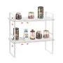 Expandable Width: This counter shelf features an adjustable width ranging from 16 to 25.6 inches, allowing it to flexibly adapt to different kitchen space sizes and storage needs. By adjusting the width, it fully utilizes available space, significantly increasing storage capacity. Whether it's a narrow corner or a spacious countertop, it perfectly fits any space
