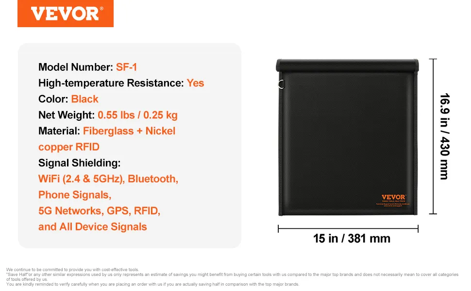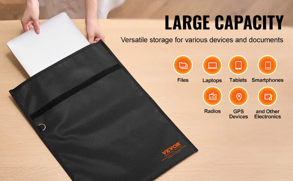 VEVOR Faraday Bag, Faraday Pouch Set for Laptop (16.9 x 15"), Fireproof & Waterproof Faraday Signal Blocking Holder for Car Keys, Phones & Tablets, Anti-Theft Pouch & Anti-Hacking Case Blocker, Black