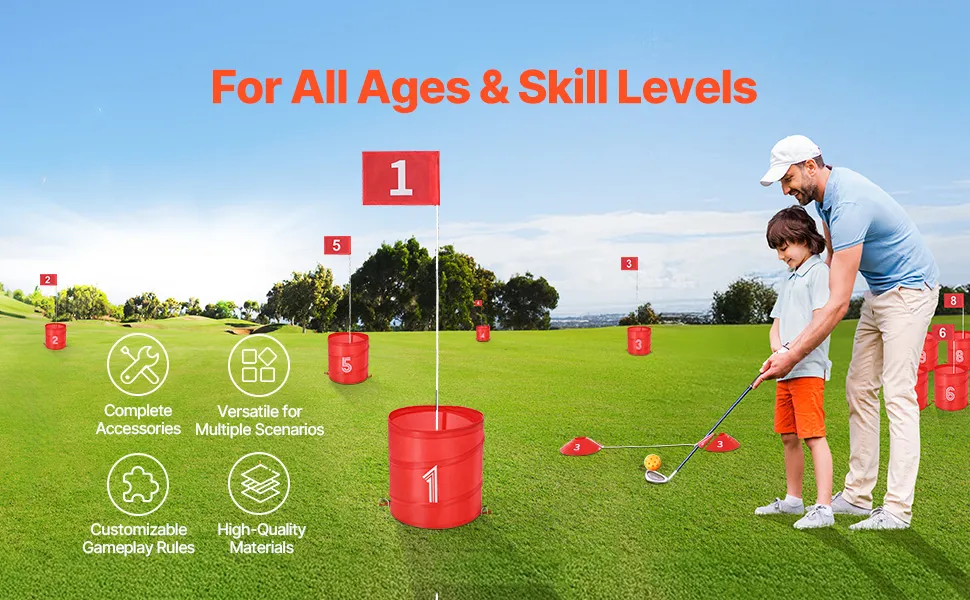 Our bucket golf game features customizable gameplay rules, high-quality materials, complete accessories, and versatility for various settings. Its simple design makes it easy to use, helping children improve hand-eye coordination while allowing parents and kids to enjoy the fun of exercise together.