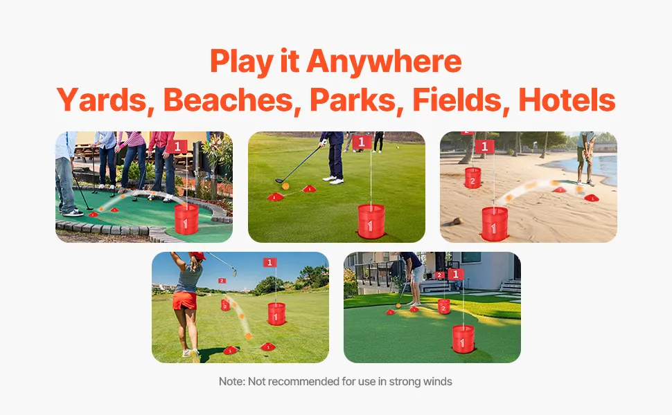 Versatile Tee Positions for Added Fun: Our golf yard game is equipped with 9 tee boxes. You can set different tee positions and varying difficulty angles, increasing the challenge while enhancing your golfing experience. Note: Not recommended for use in strong winds.
