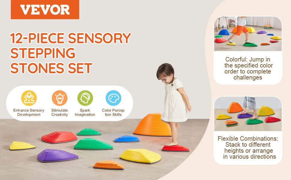 12-Piece Sensory Toy Set: Balance stepping stones with playful geometric designs and vibrant colors captivate kids' attention and spark their curiosity. Beyond basic balance training, mix and match with other toys for endless play options, boosting kids' skills while keeping the fun fresh.
