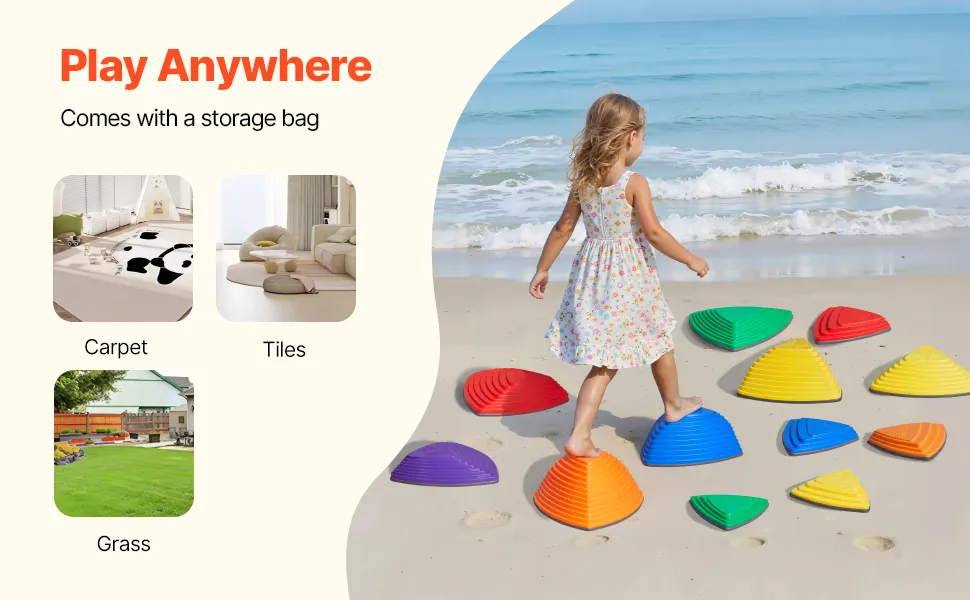 Play Anywhere, Anytime: Lightweight and portable, with a handy storage bag, these balance stones transform any space—from cozy indoor carpets to lush outdoor lawns, even parks and beaches—into a playground paradise. Let the adventures begin!