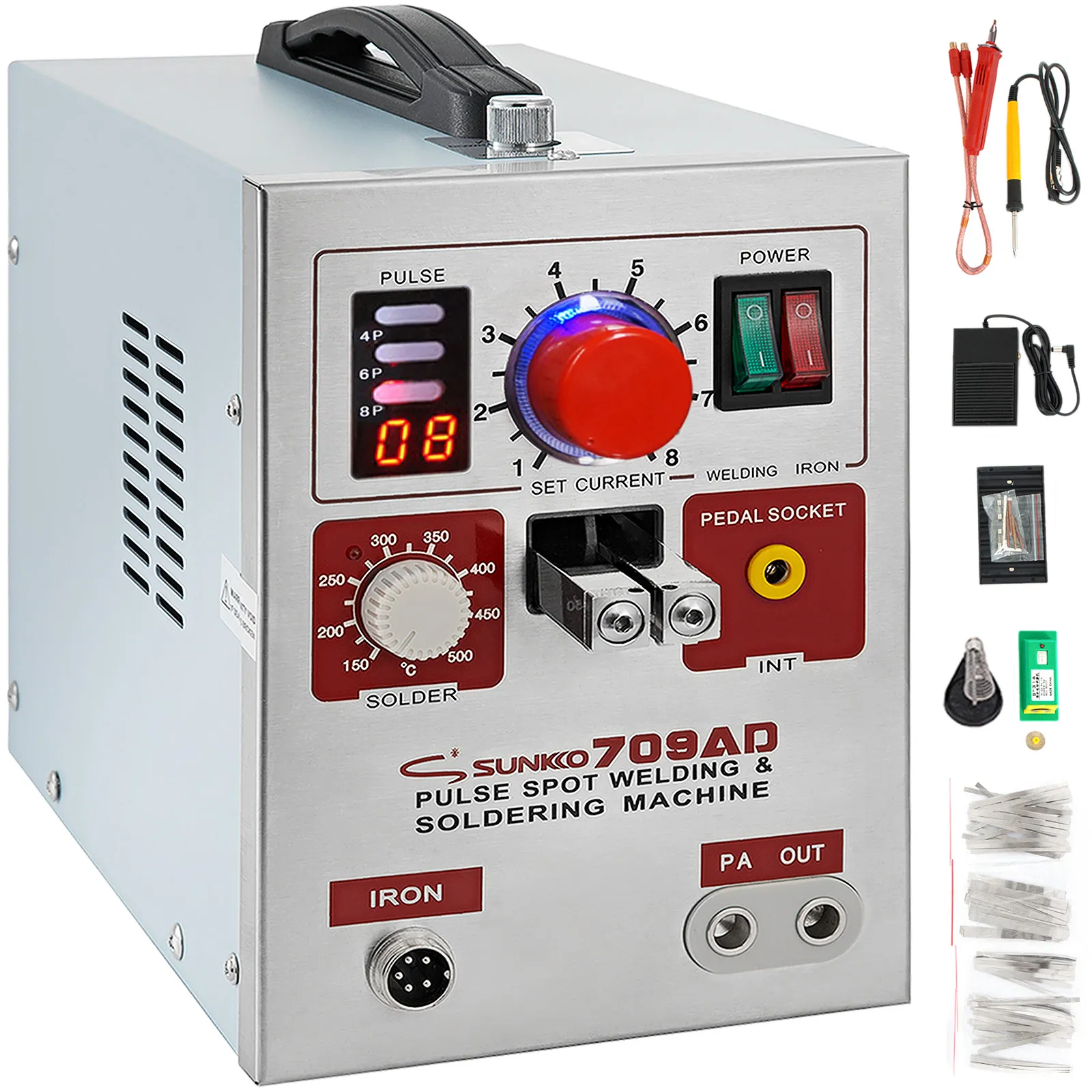 709AD is an upgrade battery spot welder of the traditional 709A series. It combines spot welding(fixed & mobile welding way) and anti-static soldering function. The micro-computer controlled product features high precision, high reliability, and power-saving. With this very machine, your work efficiency will significantly get improved and suitable for beginners to use.