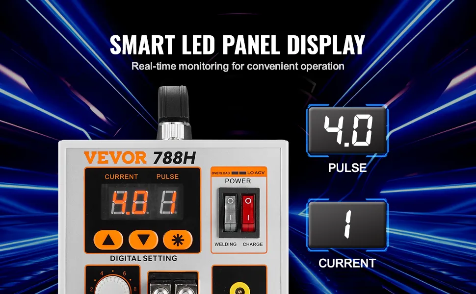 Lightweight and Portable: VEVOR 788H battery pulse spot welding machine is compact, lightweight, and easy to transport with the handle. Compared to traditional large-sized, bulky spot welders, it's smaller and lighter yet more powerful and reliable in functionality.