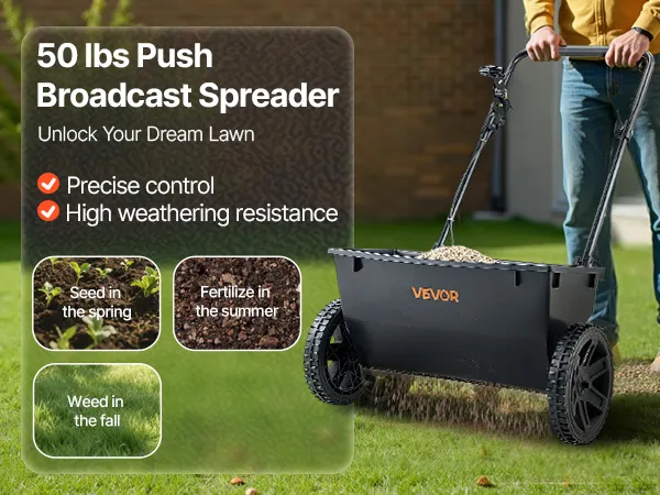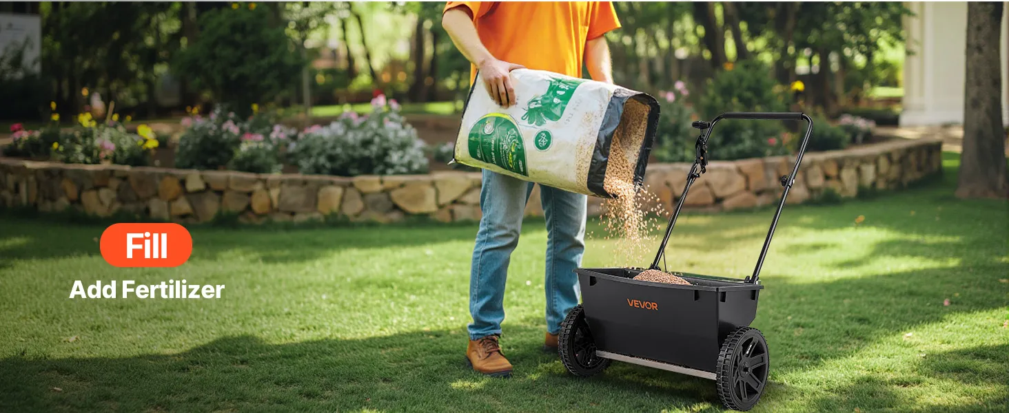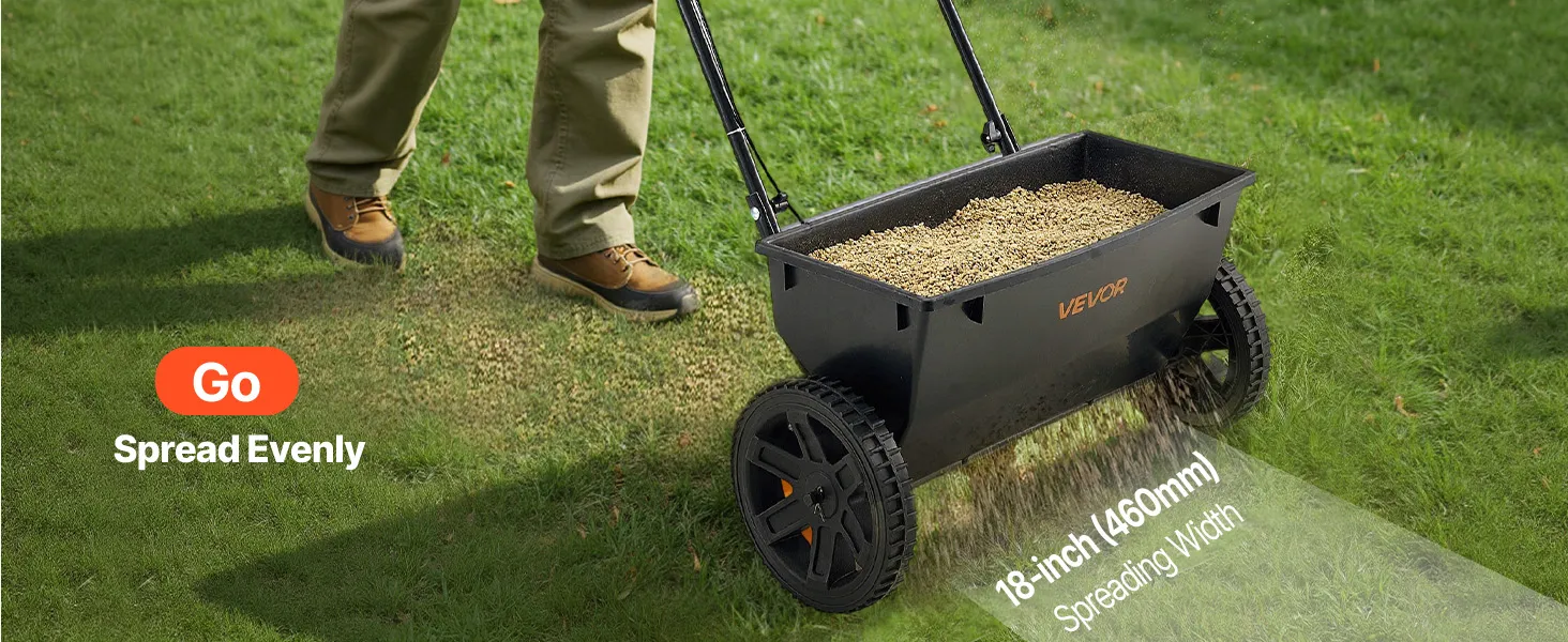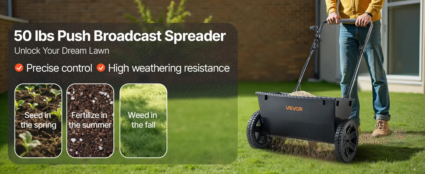 All-Year-Round Versatility: Our garden spreader is suitable for spring seeding and summer fertilizing , replacing four tools with one. Ideal for home lawns to small farms.