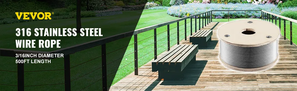 This listing is about T316 Stainless Steel Wire Rope. A high-quality product with 1 x 19 construction features a stainless steel structure and 4200 lbs/1905 kg bearing capacity. It is widely used in outdoor and indoor activities, such as clothesline, stair cable railing, garden fence, shipbuilding, etc. An excellent assistant in your daily life!