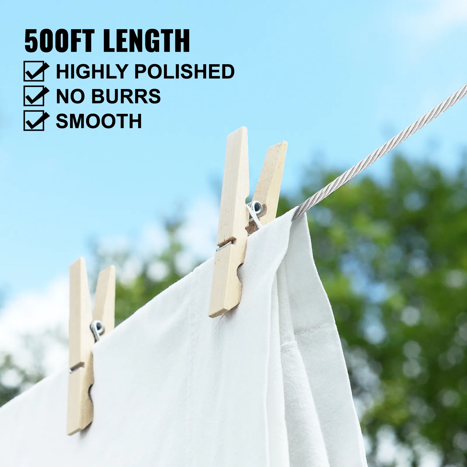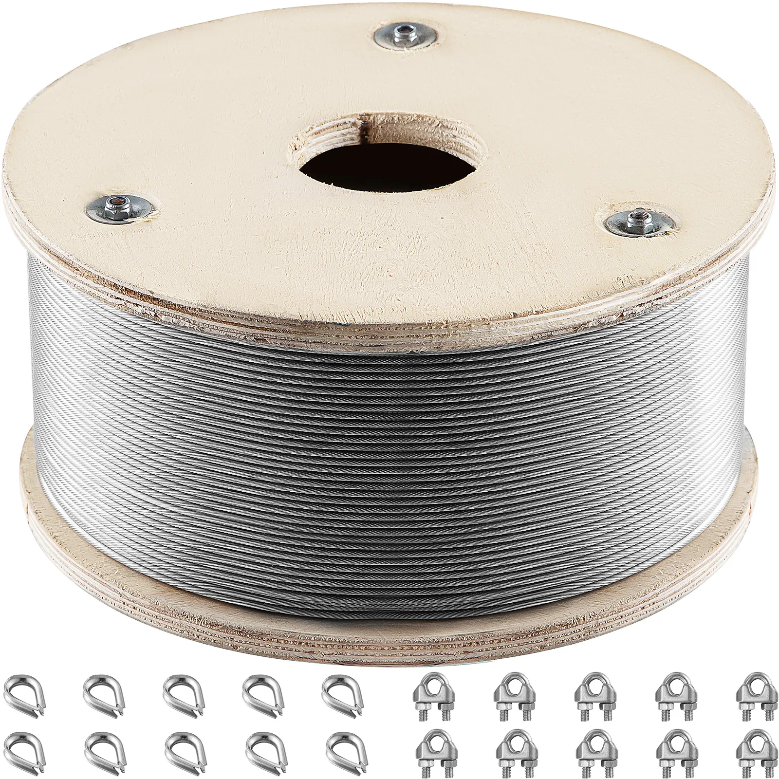 This package includes 10pcs of wire rope clips and 10pcs of capels. 500'/152 m long wire rope can be cut freely to meet your different work requirements.