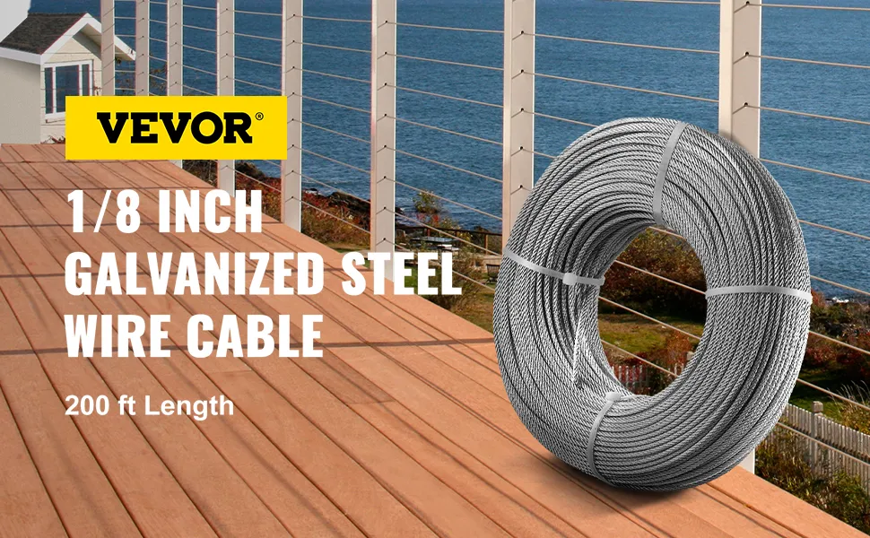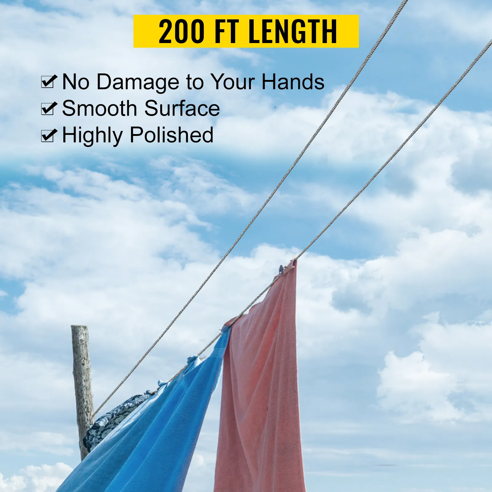 Length: 200'. The wire rope can be cut freely to meet your work requirements without loosening the joint.